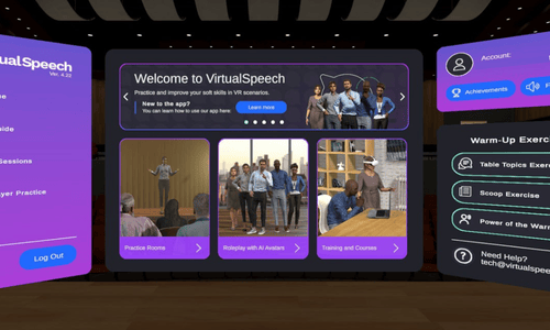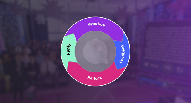 At VirtualSpeech, your training follows a powerful cycle: You start by practicing key skills and then receive feedback on your performance.