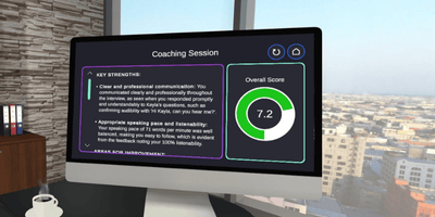 The AI Coach is available after every roleplay and presentation, whether you're training in VR or using the desktop version of our app.