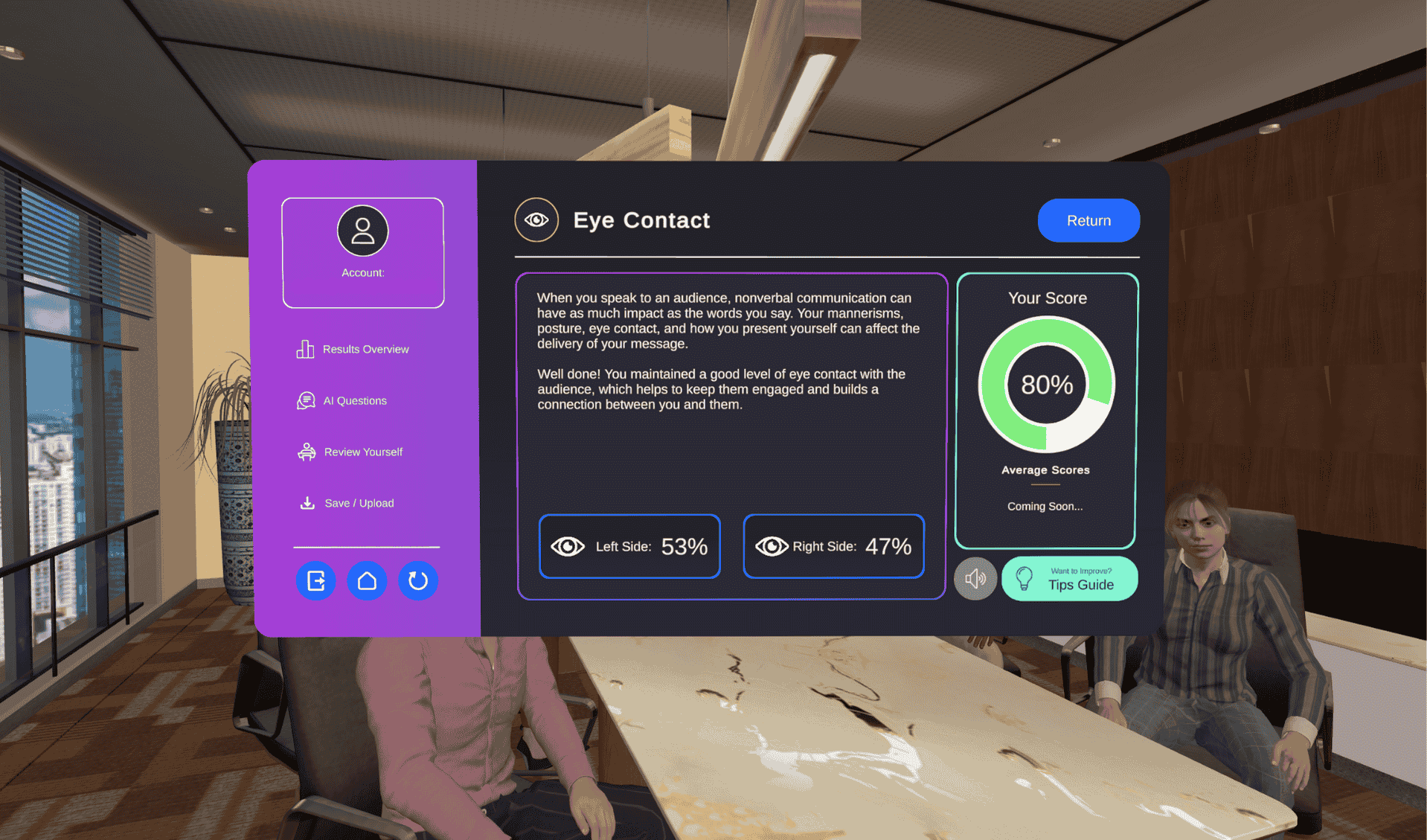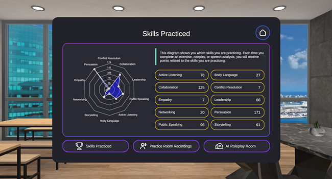 - Practice in immersive environments like meeting rooms, auditoriums, or panel interviews