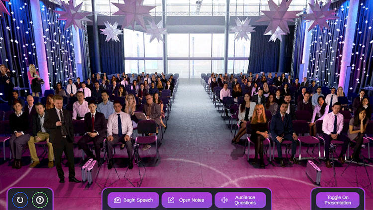 VirtualSpeech has online exercises to support different skill levels. Become a better communicator and grow your skills with over 30 exercises in public speaking, active listening, video presentations, sales pitching, impromptu speaking, and more.