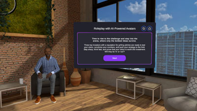 The investment pitching scenario can be accessed from your web browser, no installation or download is required. You can also access the scenarios from virtual reality, if you have a VR headset.