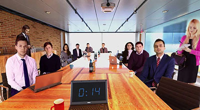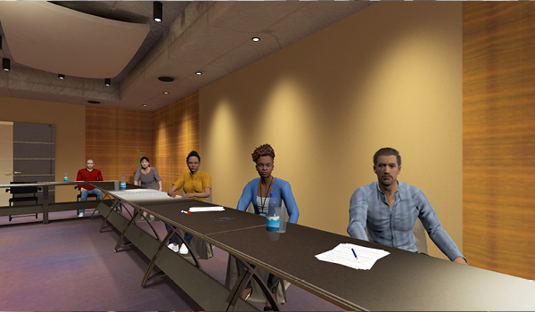 There are 4 different virtual scenarios for you to practice in, ranging from a large conference room to a smaller, more traditional training setting.